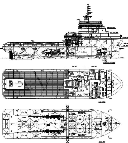 Engines : 2 x Bergens / Rolls-Royce Marine AS B32:40L6P, 6.000 kw, 750 rpm, Propellers 1 Controllable Pitch (Port Side) + 1 Controllable Pitch (Starboard)