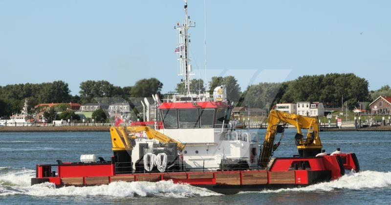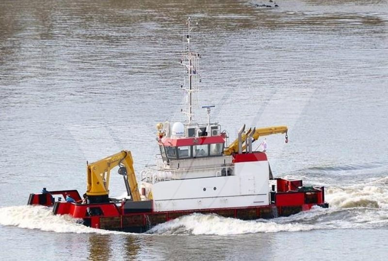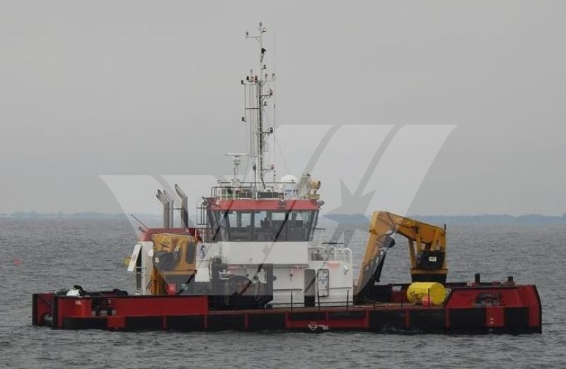 Auxiliaries Engines : 2 Caterpillar 280 kw, Bowthruster + Sternthruster (Bow Tunnel thruster in SB pushbow + Stern 250kw)