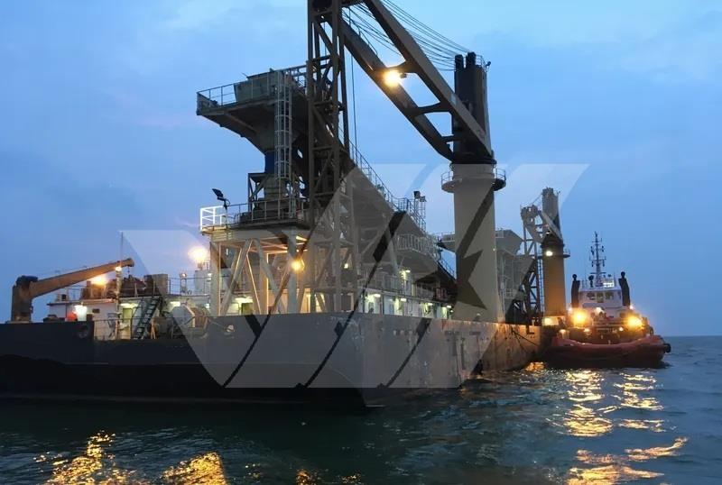 Deck cranes: Hoisting capacity Grab- 30 Tons, Hoisting capacity general cargo- 32.5 Tons.