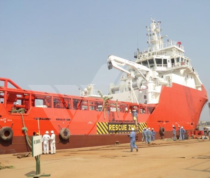 Capable of supplies of 720m³ Fuel Oils, 600m³ FW, 570m³ Liquid Mud, 570m³ Brine and 230m³ Dry bulk
