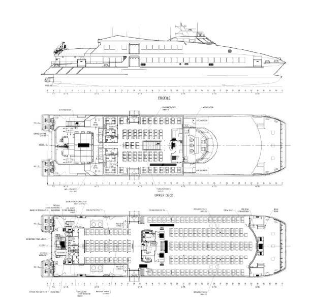 Engines : 4 x M.T.U. MTU16V4000M70, 9,280 kw, Propellers 4 Water Jet