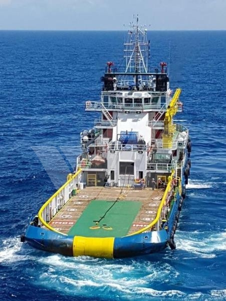 Capable of supplies of 1.250m³ Fuel Oils, 360m³ FW, 335m³ Liquid Mud and 490m³ Brine