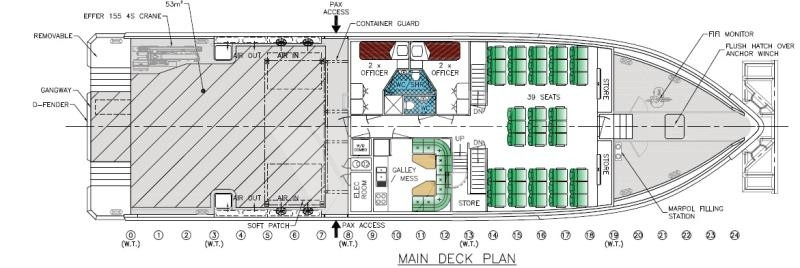 Free Deck area about 53m² with a deck strength of 3 metric tonnes per square meter