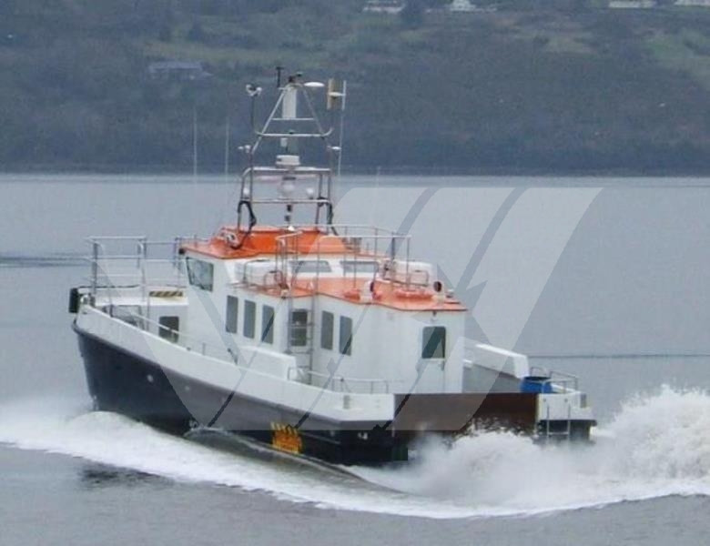 GRS identification number: #1081314 LOA 14 m Beam 5 m Draft 1 m Built in year 2012 Flag : Great Britain Total passenger capacity 12 Speed : 20 knots Engines : 2 x Cummins, 368 kw, Propellers Fixed Pitch