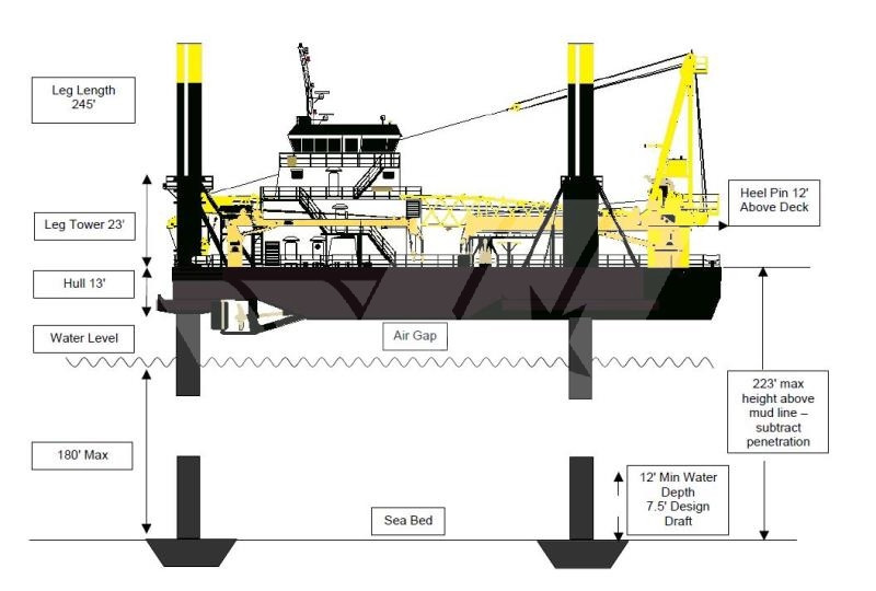 1 Crane / Gear installed with a max lifting capacity of 25 tons