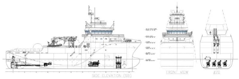 Auxiliaries Engines : Bowthruster (1 Bow 600kw Azimuth ZF)