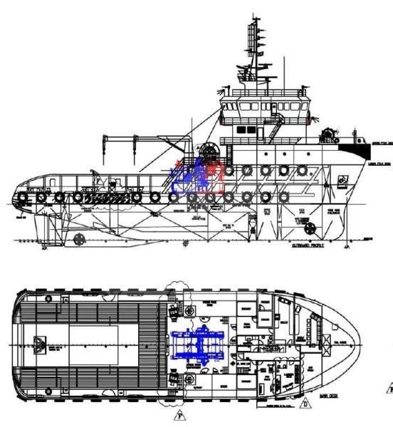 Auxiliaries Engines : 3 Cummins 380 kw, Bowthruster + Sternthruster (1 Bow Tunnel thruster 500kw Kamome CPP Electric Driven, 66.70 kN + 1 Stern Tunnel thruster 275kw Kamome CPP Elec Driven, 49kN)
