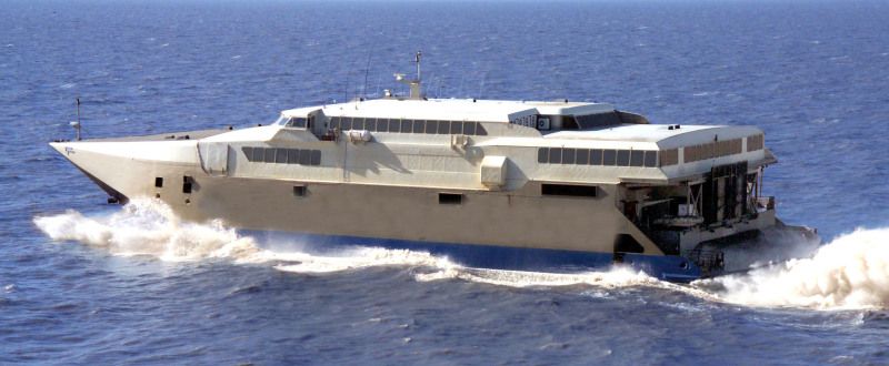 This is a 316’ Fast Monohull RoPax Ferry built in Spain in 1994. It can carry up to 450 passengers in its luxurious interior and up to 84 cars. Classification is DNV. It has a service speed of 35 knots and a max speed of 37 knots. It has very shallow draft allowing to operate in some ports where other deeper fast RoPax ferries cannot berth. FEATURES A top speed of 37 knots and a service speed of 35 knots Very shallow draft (only 2.1 meters) Very low crew requirements even at full load (only 16 crew) Luxurious interior Large duty free shop It has operated around the world